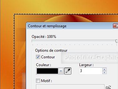 14.Clic droit dans la sélection > Contour et remplissage > Contour. Noir. L=3