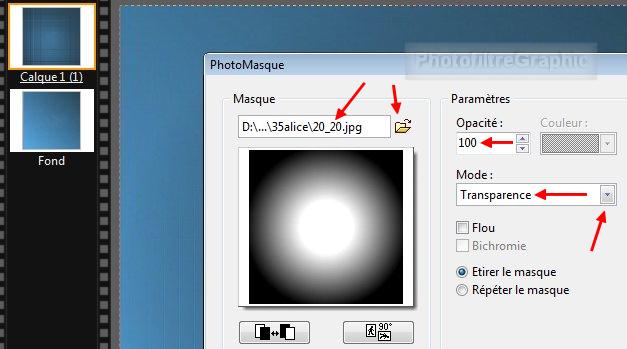 20a. Appliquez le masque 20.20 avec Photomasque du menu Filtre. Mode Transparence. Opacité = 100