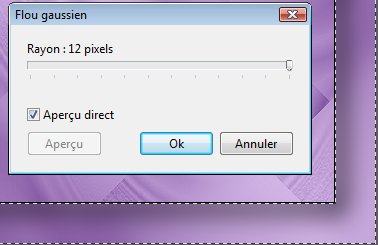 21f. Menu Filtre > Effet d'optique > Flou gaussien. Rayon = 12 pixels
