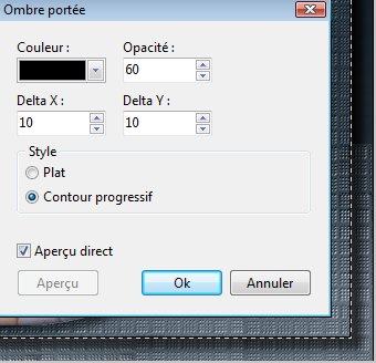 40. Menu Filtre > Esthétique > Ombre portée. Noir. Opacité=60. X = Y= 10