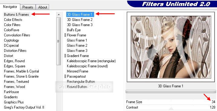 Software> Filters Unlimited 2 > Buttons & Frames > 3D Glass Frame 1. 34. 128