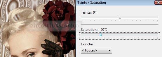 17.Menu Réglage > Teinte/Saturation. Saturation= -50%