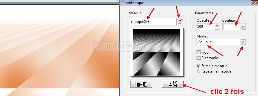 du menu Filtre en le pivotant 1 fois et en l'inversant