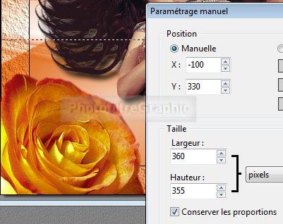 sélection rectangulaire autour de l'ombre qui dépasse du cadre fin