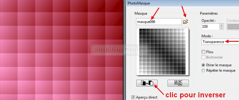 8.Sur le calque,appliquez le masque 096 en l'inversant avec Photomasque
