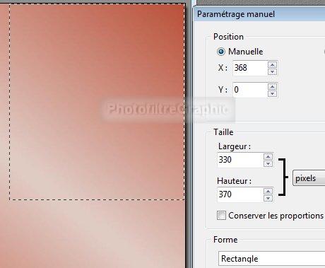 Largeur =330 Hauteur= 370. Décochez Conserver les proportions. Forme