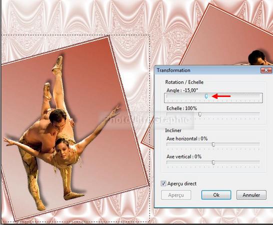 Transformation paramétrée. Angle =-15°. Echelle= 100%