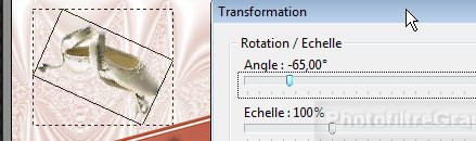 Transformation paramétrée. Angle =-65°