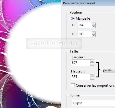 Largeur =397.Hauteur=355.Décochez Conserver les proportions. Forme Ellipse