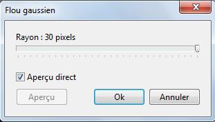 4.Pour adoucir l'ensemble: Menu Filtre > Effet d'optique > Flou gaussien. Rayon:30 pixels (ou 12 pixels sur anciennes versions)