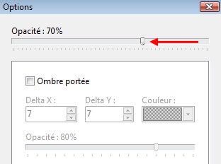 Cochez Ombre portée. 7/7. Noir. Curseur Opacité du bas sur 50%