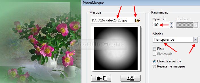 20. Appliquez le masque 20_20 avec Photomasque du menu Filtre. Mode Transparence. Opacité = 100