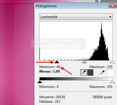 Coulissez le curseur noir du haut pour avoir Minimum à 60