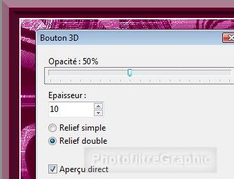 3D. Opacité= 50%. Epaisseur= 10. Relief double