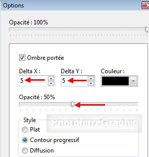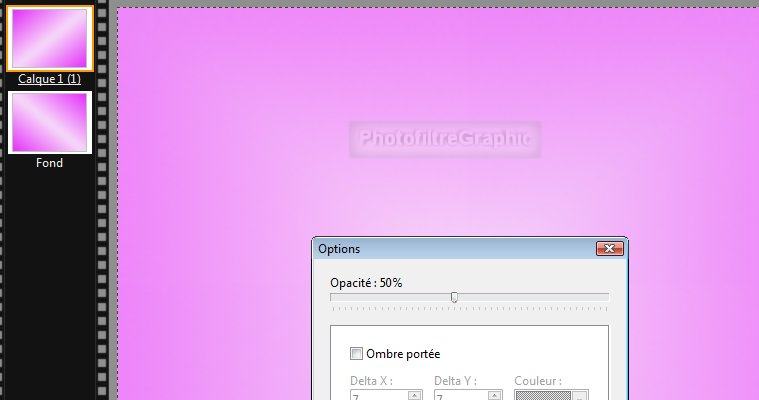 calque. Cochez Ombre portée. 5 / 5. Noir. Curseur Opacité du bas sur