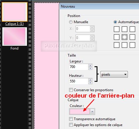 15. Menu Calque > Nouveau > Vierge. Position Automatique au centre