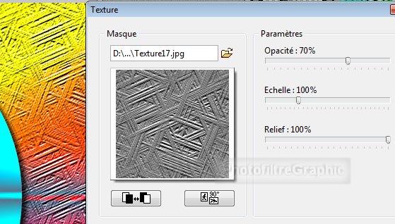 15. Opacité = 70%. Echelle = 100%. Relief