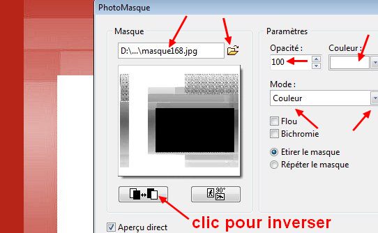 du menu Filtre. Opacité = 100. Couleur blanche. Etirer le masque