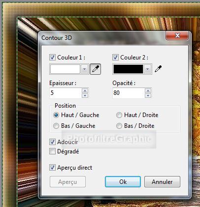 Contour 3D. Couleur 1=Blanc. Couleur 2=Noir. Epaisseur=5. Opacité=80.