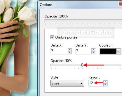 Couleur 1=Blanc. Couleur 2=Noir. Epaisseur=5. Opacité=80. Haut/Gauche. Adoucir