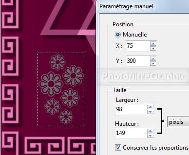 29.Position manuelle: X= 75 Y= 390