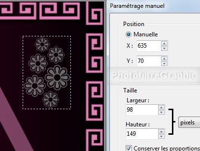32.Position manuelle: X= 635 Y= 70