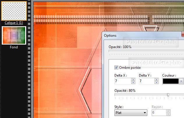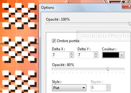 calque. Cochez Ombre portée. 7/7. Noir. Curseur Opacité du bas sur