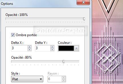 calque 2. Cochez Ombre portée. 3 / 3 . Noir. Curseur Opacité du bas sur