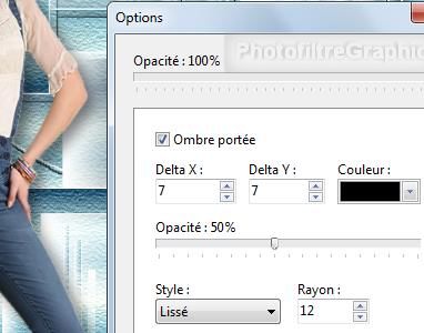 calque . Cochez Ombre portée. 7/7. Noir. Curseur Opacité du