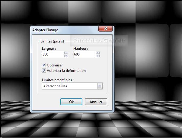 = 800 et Hauteur = 600. Optimiser et Autoriser la déformation