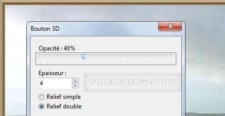 29.Menu Filtre > Encadrement > Bouton 3D: Opacité =40%.