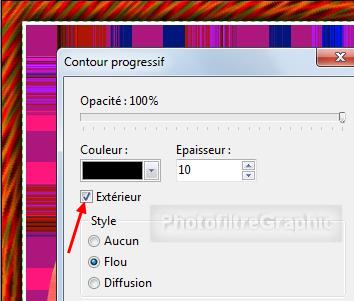 Epaisseur = 10. Flou. Extérieur coché