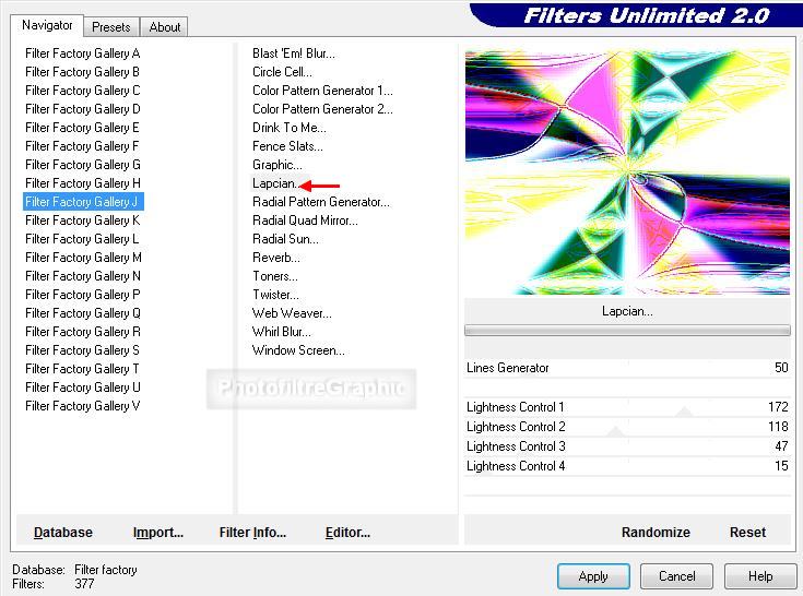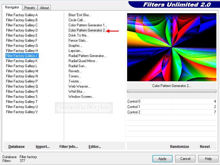 Factory J > Color Pattern Generator 2: Réglages d'origine > Apply en bas > OK tout en bas