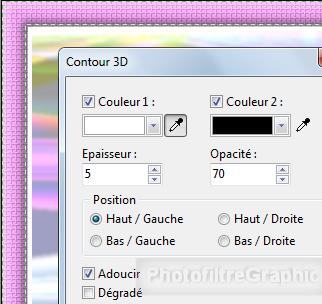 Contour 3D. Couleur 1=Blanc. Couleur 2=Noir. Epaisseur= 5. Opacité= 70.