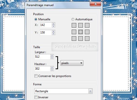 Paramétrage manuel. Conserver les proportions