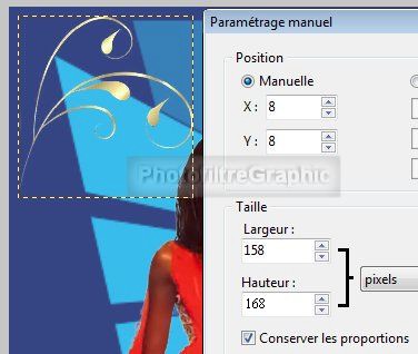 24. Position Manuelle X=8 Y=8. Taille. Largeur =158 Hauteur=168.