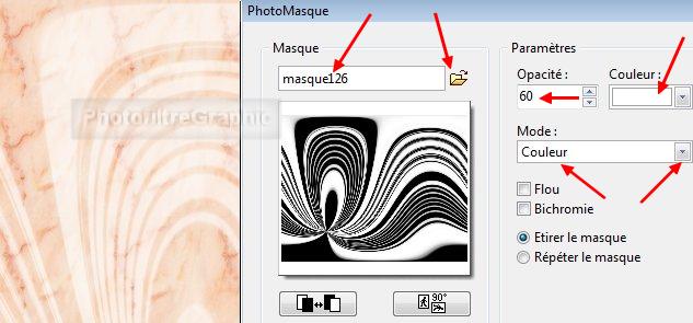 7.Appliquez le masque126 avec Photomasque du menu Filtre. Couleur blanche. Opacité= 60