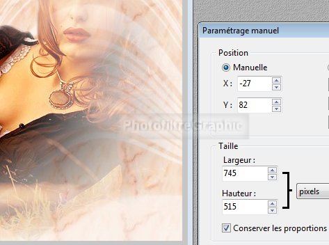 11. Clic droit sur la dame > Paramétrage manuel. Cochez Conserver les proportions
