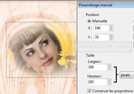 20.Position Manuelle X=106 Y=70. Taille. Largeur =300 Hauteur=185