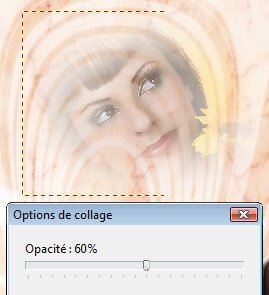 21. Clic droit sur le visage > Options de collage > Opacité= 60%