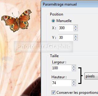 26. Clic droit sur le papillon > Paramétrage manuel. Cochez Conserver les proportions