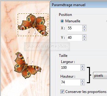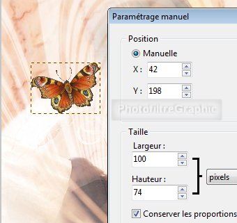 45. Clic droit sur le papillon > Paramétrage manuel. Cochez Conserver les proportions