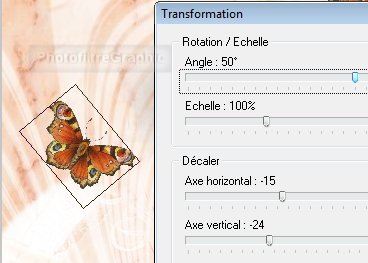 37. Clic droit sur le papillon > Transformation > Paramétrée