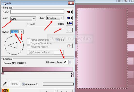 3.Mettez en couleur d'arrière-plan le rose clair R=249 V=224 B=243