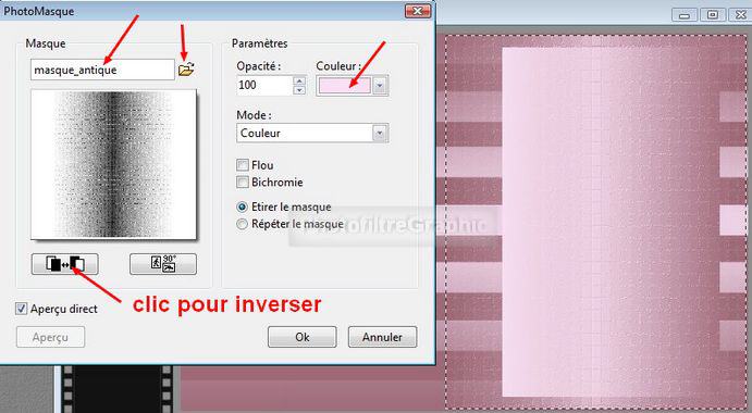 18.Appliquez le masque-antique avec Photomasque en l'inversant. Couleur de l'avant-plan