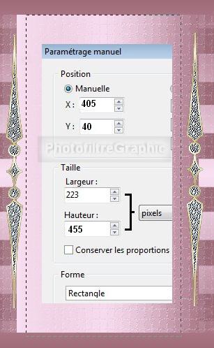 34.Position Manuelle X=405 Y=40. Taille. Largeur =223 Hauteur=455