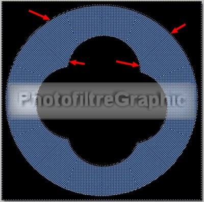 26.Puis,en contractant de 50 puis touche Suppr (couleur de fond blanche) vous permet de dessiner cet anneau qui en le sélectionnant peut être rempli par une couleur ou un motif