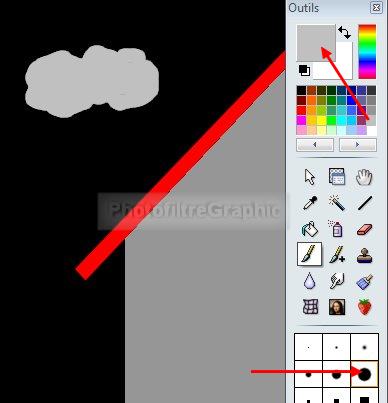 16.Dessinez un nuage avec le pinceau. Couleur: gris clair. Clic sur la grosse pointe