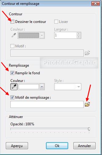 25.Décochez Contour. Cochez Remplir et Motif de remplissage