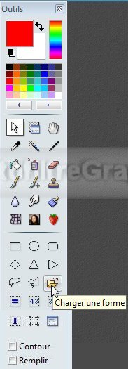 40.Cliquez sur l'outil sélection. Puis sur l'icône Charger une forme (icône jaune en bas)